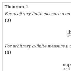Namely, for a given x, we define $\mu _{0},\nu $ by restricting μ to $[x-R,x+R]$ and its complement, respectively. Without loss of generality, we assume that for each R, the corresponding ν is nonzero. Since we have already proved the required statement for finite measures, we get (17).
