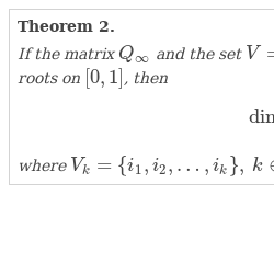 If the matrix $Q_{\infty }$ and the set $V=\{i_{1},i_{2},\dots ,i_{k},i_{k+1},\dots \hspace{0.1667em}\}$ are such that equation $\sum _{i\in V}{q_{i}^{x}}=1$ has no roots on $[0,1]$, then