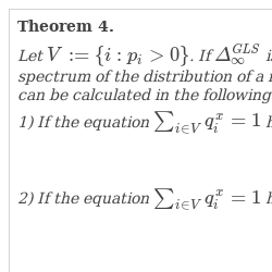 Let $\alpha _{0}=\dim _{H}(C[\mathit{GLS},V])$. Show that $\sup \{x:\sum _{i\in V}{q_{i}^{x}}\ge 1\}\ge \alpha _{0}$. Let us consider the function and denote the set Let $\alpha _{k}$ and $\alpha _{k+1}$ be the solutions of the equations and respectively.