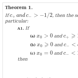 - A5. If $c_{+}=c_{-}=:c<1/2$, then, for any $x_{0}$, where $\gamma =({\int _{-\infty }^{+\infty }}\widetilde{a}(z)\hspace{0.1667em}dz)=\frac{1-\exp \{-2{\int _{-\infty }^{+\infty }}\widetilde{a}(z)\hspace{0.1667em}dz\}}{1+\exp \{-2{\int _{-\infty }^{+\infty }}\widetilde{a}(z)\hspace{0.1667em}dz\}}$.