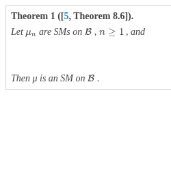 Let ${\mu _{n}}$ are SMs on $\mathcal{B}$ , $n\ge 1$ , and