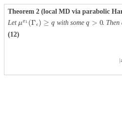 where $d\gamma $ is the element of the boundary ${\Gamma _{\epsilon }}$. Then the following local mixing bound holds true.Theorem 2 (local MD via parabolic Harnack).