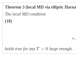 Theorem 3 (local MD via elliptic Harnack).