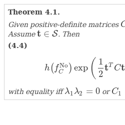 Given positive-definite matrices $C_{1},C_{2}$ and $\lambda _{1},\lambda _{2}\in [0,1]$ with $\lambda _{1}+\lambda _{2}=1$, set $C=\lambda _{1}C_{1}+\lambda _{2}C_{2}$. Assume $\mathbf{t}\in \mathcal{S}$. Then