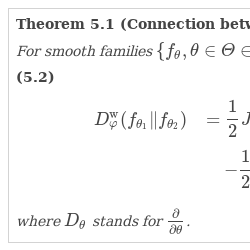\[{D_{\varphi }^{\mathrm{w}}}(f_{\underline{\theta }_{1}}\| f_{\underline{\theta }_{2}})={e}^{A_{\varphi }(\underline{\theta }_{1})-A(\underline{\theta }_{1})}\big(A(\underline{\theta }_{2})-A(\underline{\theta }_{1})-\big\langle \nabla A_{\varphi }(\underline{\theta }_{1}),\underline{\theta }_{2}-\underline{\theta }_{1}\big\rangle \big),\]