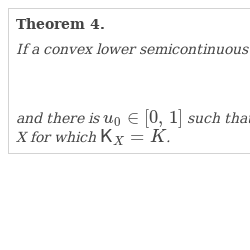 - (i) The function $\mathsf{K}_{X}$ is convex and lower semicontinuous. It takes finite values on $(0,\hspace{0.1667em}1)$ and equals $+\infty $ outside $[0,\hspace{0.1667em}1]$.