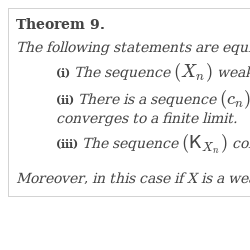 Combining these inequalities, we obtain $\lim _{n\to \infty }\mathsf{r}_{{\mathbb{E}}^{n}}(u)=\mathsf{r}_{\mathbb{E}}(u)$ for $0<u<1$. Since risk functions vanish at 1, the convergence holds for $u=1$ as well.Now the converse implication (ii)$\hspace{0.2778em}\Rightarrow \hspace{0.2778em}$(i) is proved by standard compactness arguments. □